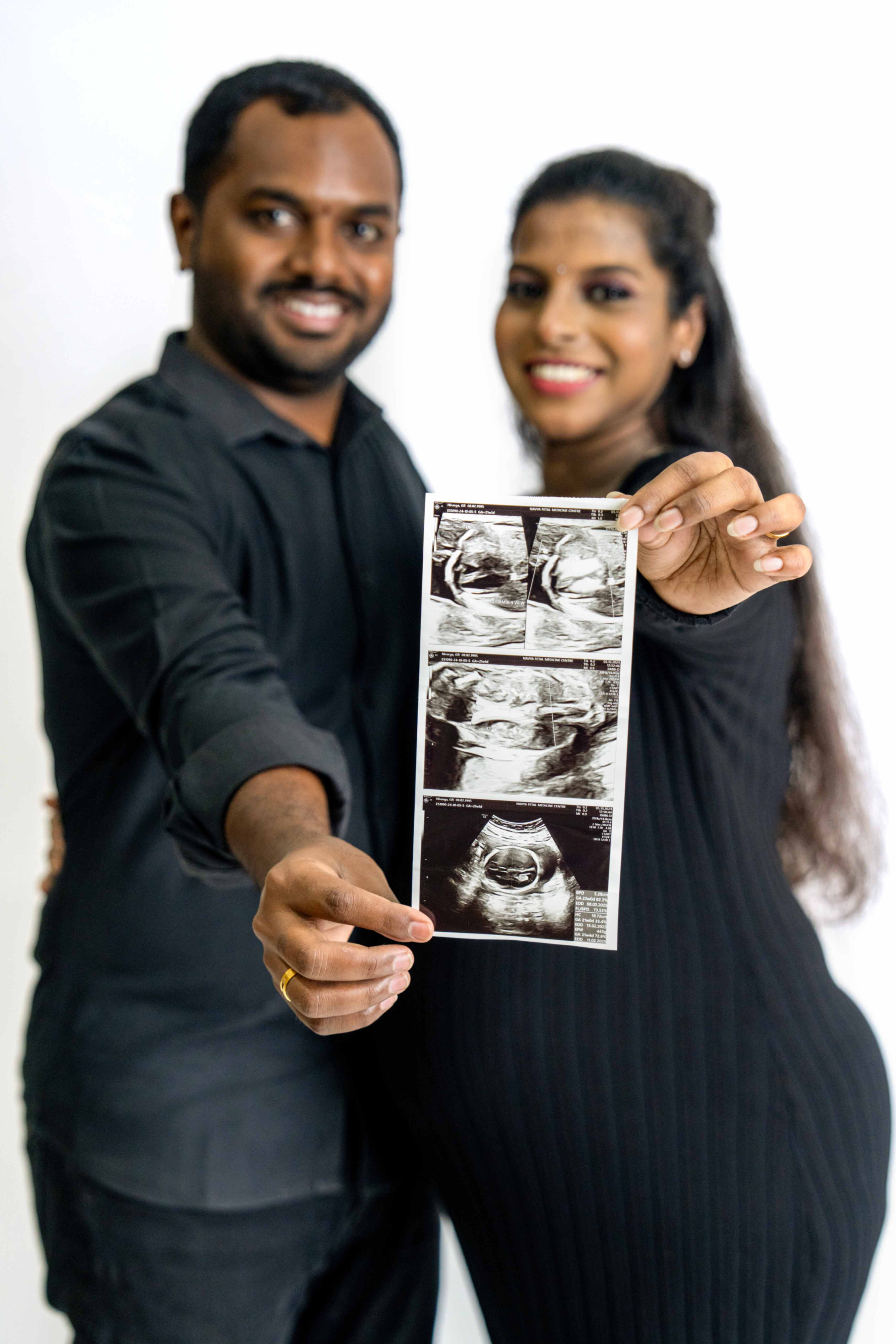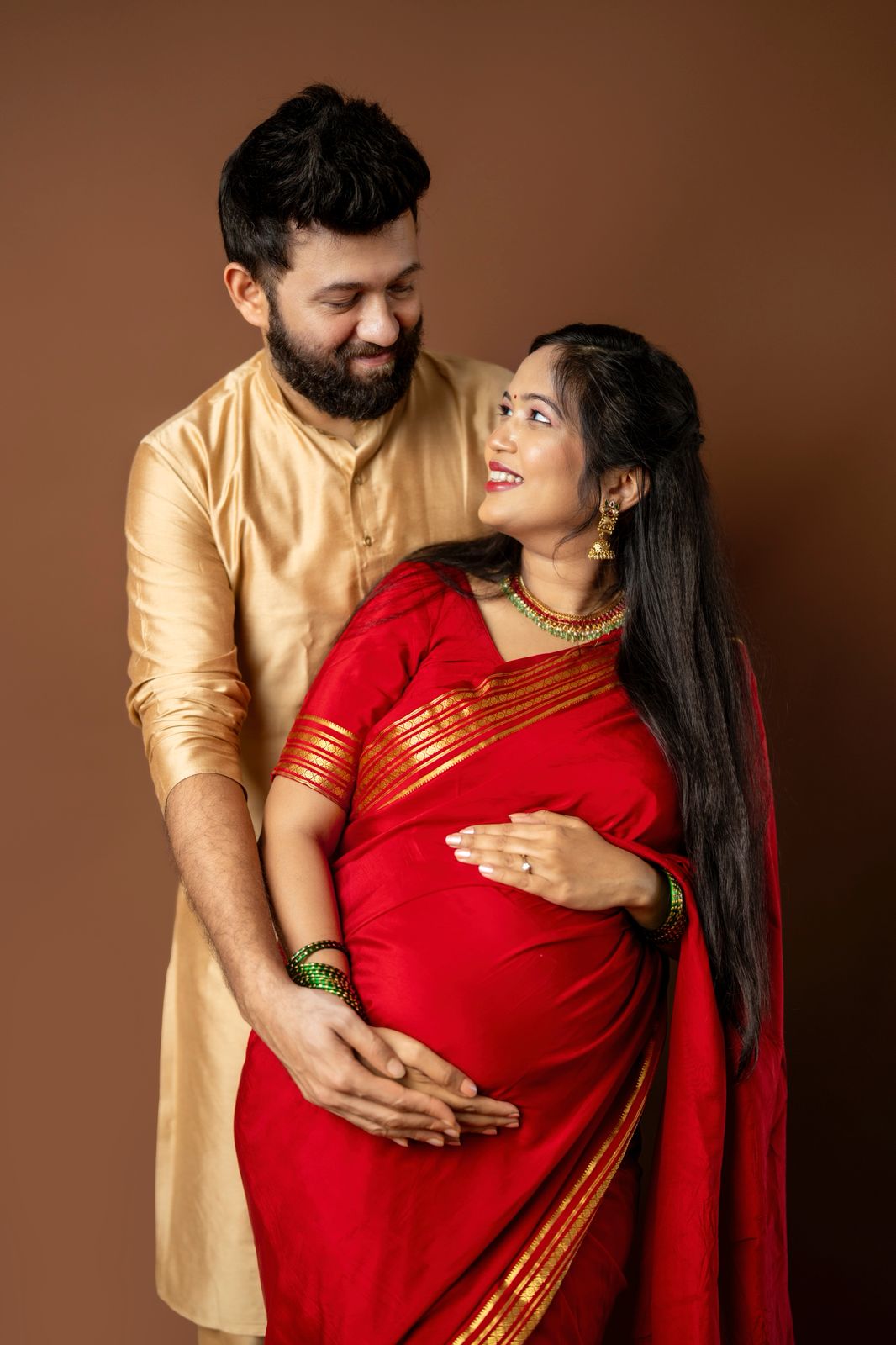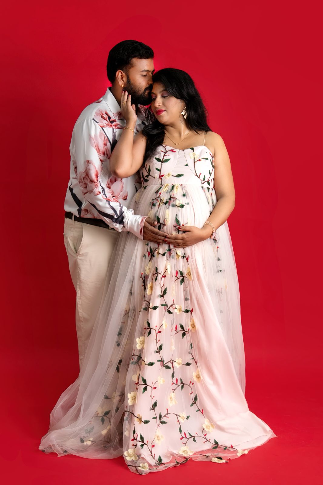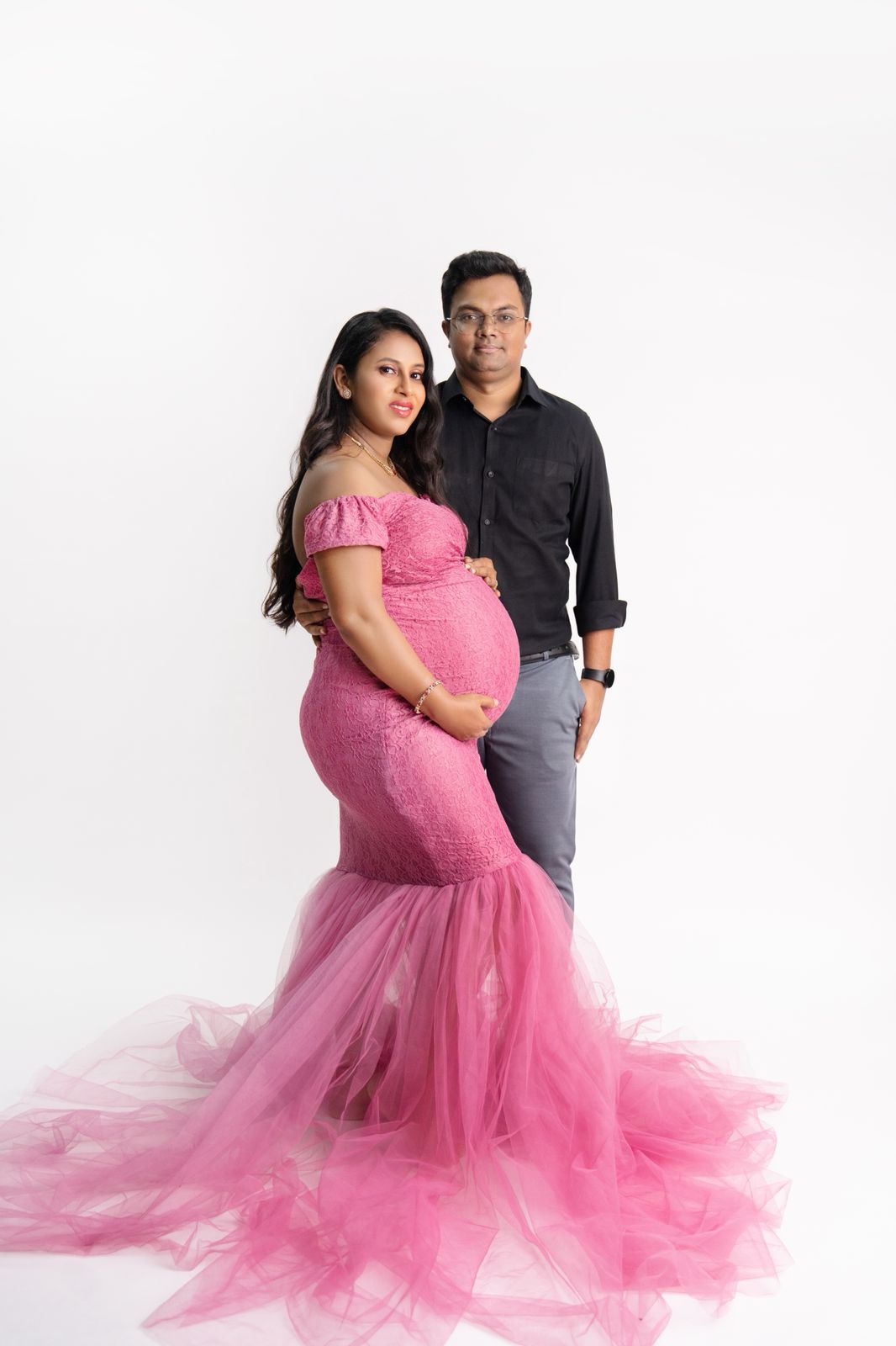 Ideally, maternity photoshoots are scheduled toward the end of the second trimester or early in the third trimester (Wk 27 to 31), when the baby bump is prominent, but the mother is still comfortable with posing.